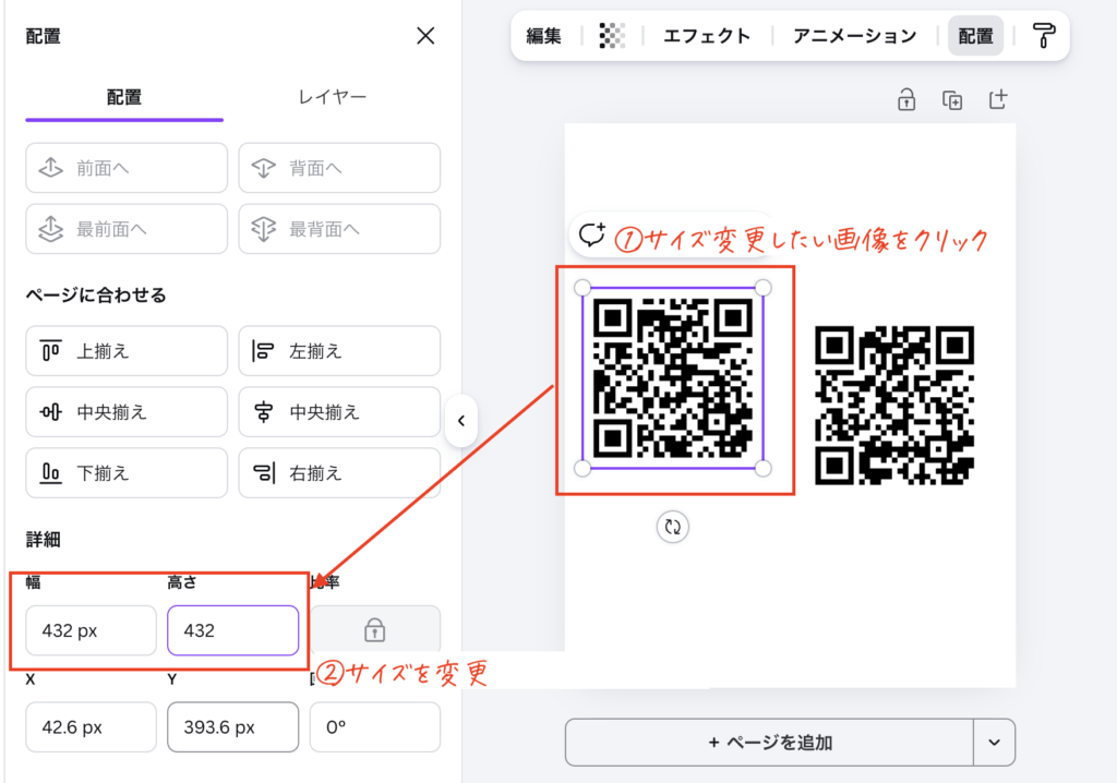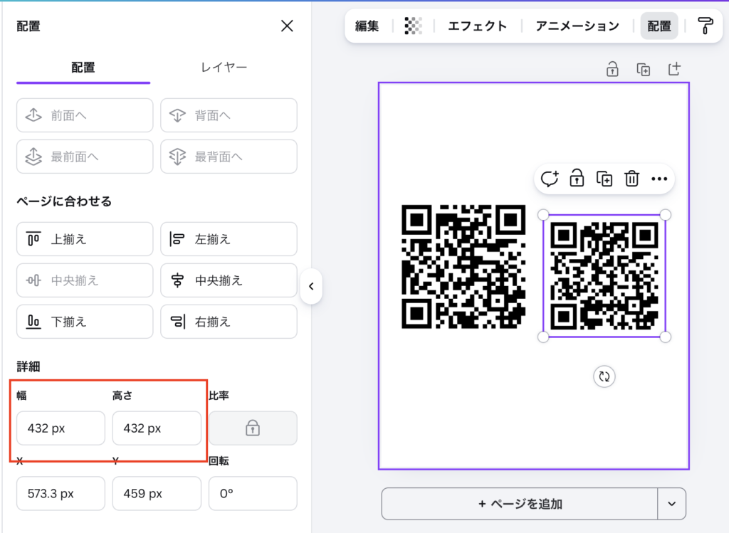 今回は、例として2つの「QRコード」のサイズ揃えていきますね。