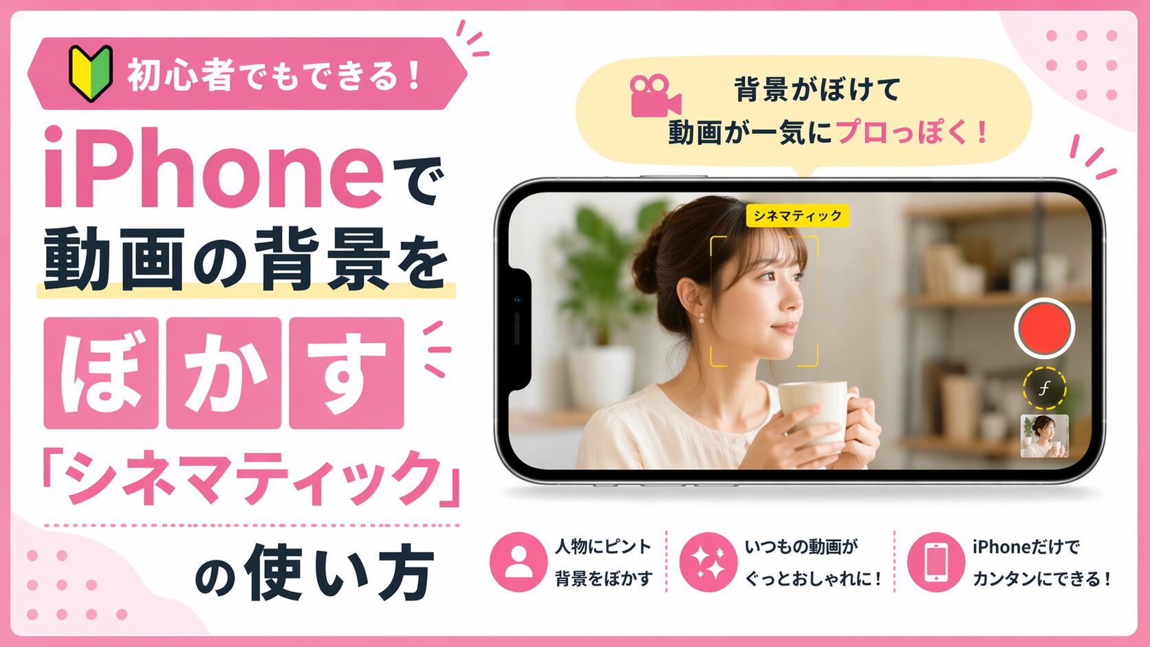 この記事ではiPhoneで動画の背景をぼかす方法を知りたい方や、リール撮影で部屋を見せたくない方に向けて、初心者にもできるやり方をわかりやすく解説します。