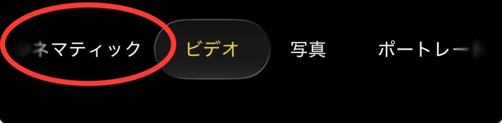 iPhoneのカメラアプリを起動してモードをスライドさせ、「ビデオ」の左側にある「シネマティック」をタップします。