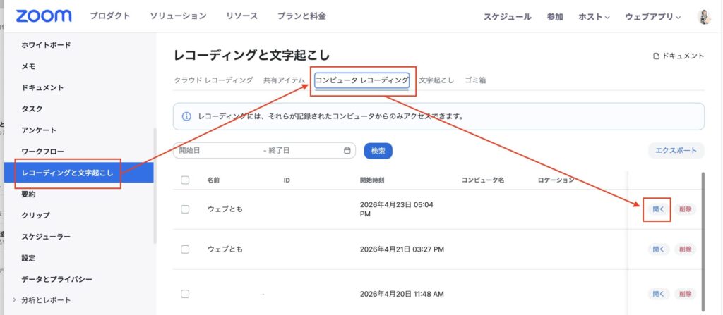 Zoomで録画したあとに、