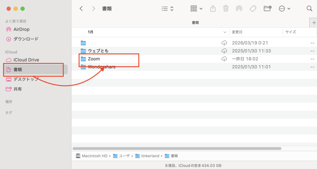 Finder > 書類 > Zoom