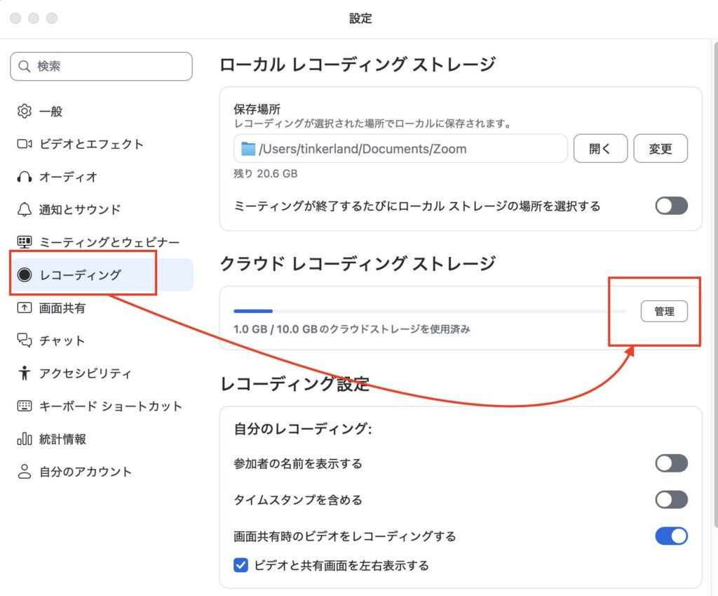 | クラウド録画 | Zoomのオンラインサーバー | 有料プラン限定。 |
